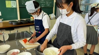 6年生になって初めての調理実習を行いました。