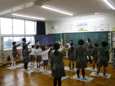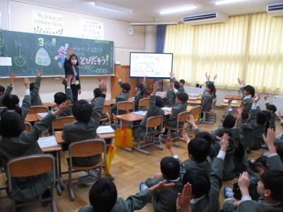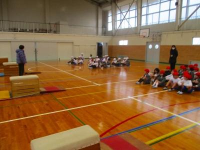 1組と2組合同で体育を行いました。内容は跳び箱です。段々と4月が近づいていますが、4年生になって最初にある大きな行事が「器械運動交歓会」です。内灘町の4年生が一同に集まり、跳び箱、マット、鉄棒から1種目を選んで演技し、互いに見合う会です。それに向けて今回は跳び箱に挑戦しました。