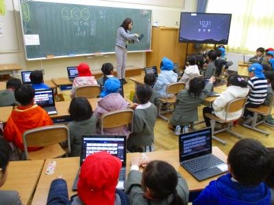今回は、クロームブックを使った国語と算数の授業を体験してもらいました。