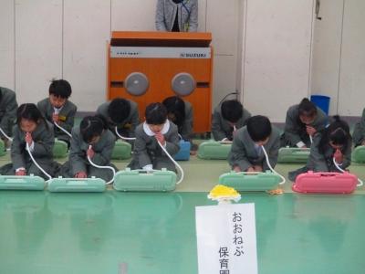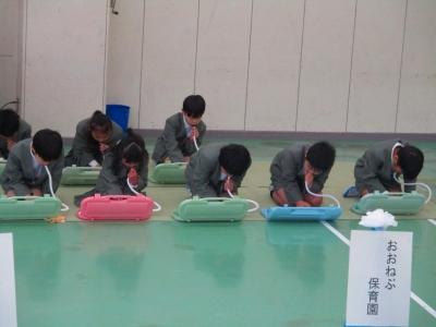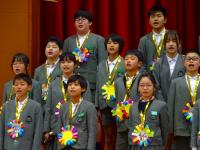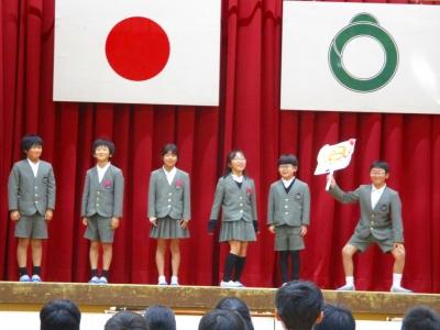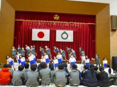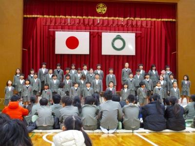 代表児童たちの年長さんを歓迎する言葉からはじまり、まずは、大根布小学校の校歌を披露しました。