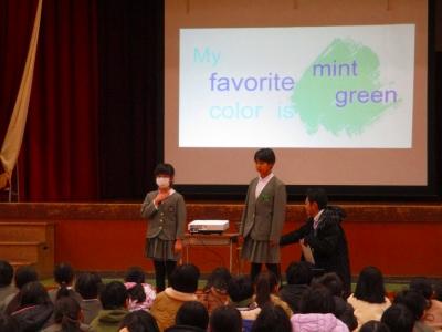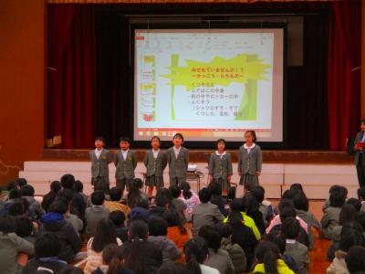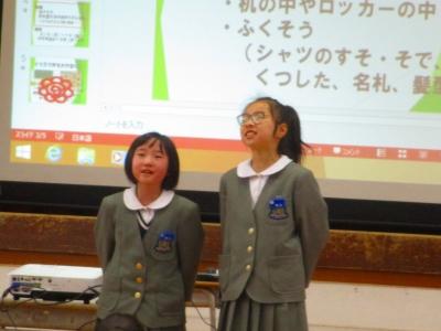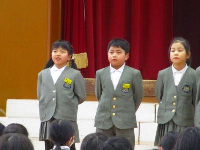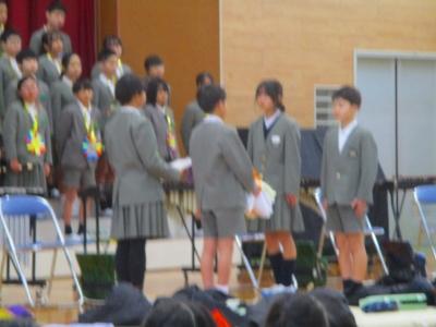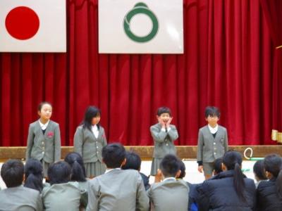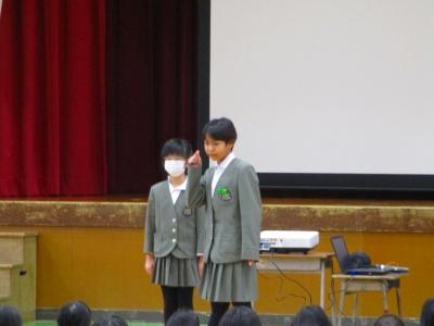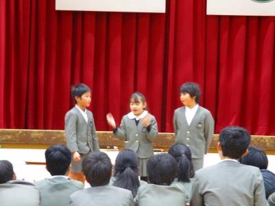 また、2月4日(日)に文化会館で行われるスピーチフェスティバルに、本校からも2名が参加します。そのリハーサルも兼ねて、スピーチを披露してもらいました。自分の思いがこもったとてもすてきなスピーチでした。
