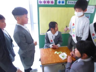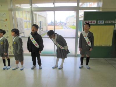 3.4年生の「あいさつ隊」を筆頭に、あいさつ運動を行い、明るく元気に1日を始めることができました。
