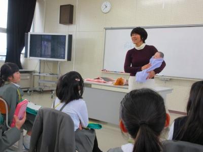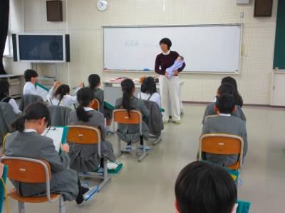 2年生は、生活科の学習「今までのわたし これからのわたし」で助産師の北村さんに来ていただき、命の誕生や成長についてのお話を聞きました。