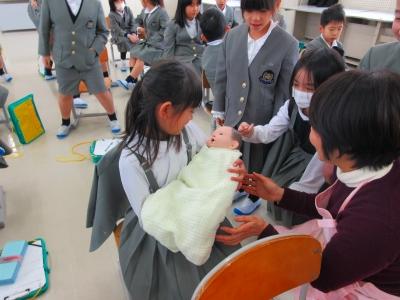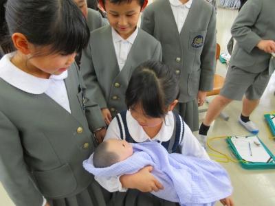 後半には、赤ちゃんの人形を抱っこする時間もあり、「思ったより重い!」「本物みたいで緊張する」など様々な感想を抱いていました。