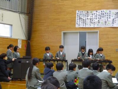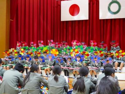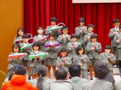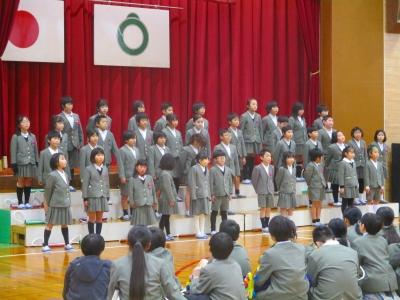 6年生も在校生に感謝の気持ちと中学校へ行っても頑張っていく決意を伝えようと、合奏「departure」合唱「ぼくらまた」を贈りました。本番では練習以上の力を出すことができ、子どもたちは達成感を感じたようです。