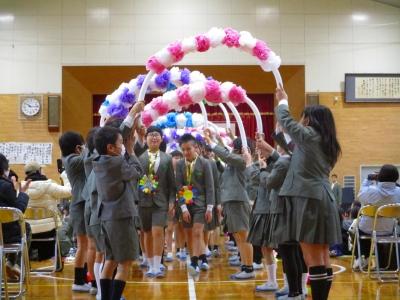 また、出し物とは別に6年生の入退場で使用するアーチを作りました。他の児童の歓声や6年生の笑顔を見て、3年生も素敵な笑顔が見られました。