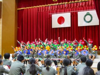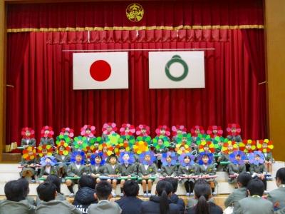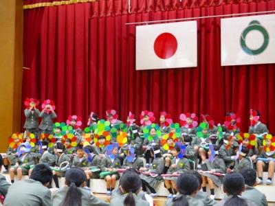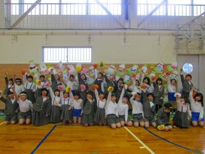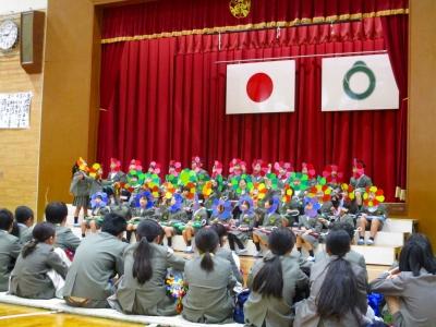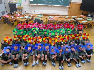 お花になった1年生たちが6年生にありがとうの気持ちを届けました。