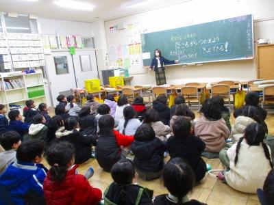 12月の全校集会以来、久しぶりに全校児童が体育館にそろうことができました。今年度も残りあと2か月となってしまいましたが、次の学年に向けて、いい2月のスタートが切れたのではないかと思います。