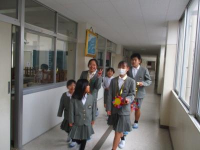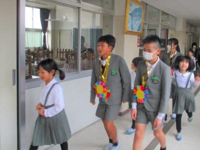 1年生が6年生を迎えに行きました。