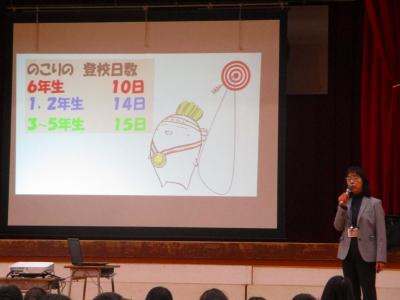いよいよ今年度最後の月となりました。全校集会も今回が最後となります。