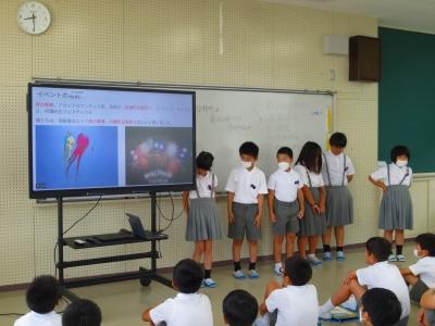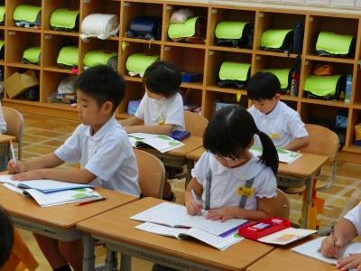 終業式は、各教室でライブ配信で行いました。校長先生からは、めあてを持って計画的に過ごすことや、平和への感謝を感じながら毎日を過ごすことなどが話されました。生徒指導担当からは、夏休みの安全な生活について話がありました。また、1学期末に実施したねぶっ子漢字検定の金賞受賞者の表彰と、必読書を読破した子などの表彰も行いました。