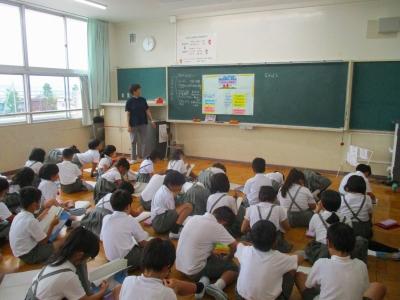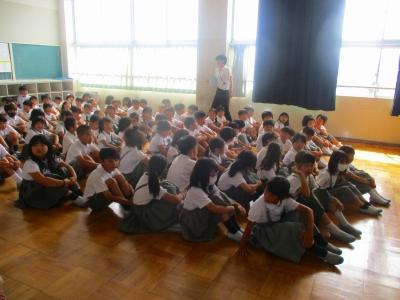 身体計測の後には、保健室の飯田先生から、熱中症対策についてのお話を聞きました。