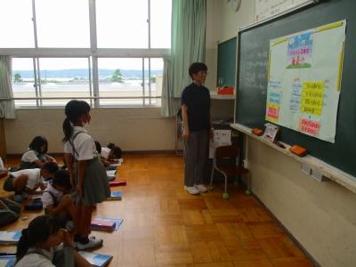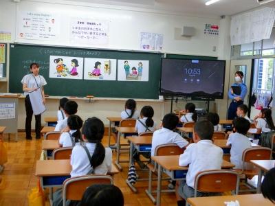 1学期まで2・3・4年の外国語活動の授業にALTとして勤務していたローワン先生に代わって、2学期から新たにリリィ先生が着任されました。
