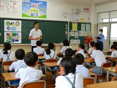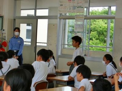 津幡警察署の警察官の方が学校に来て下さり、2年生と5年生のピュアキッズスクールがありました。