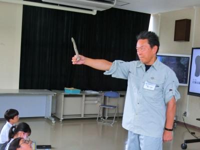 自分達で勾玉を作成する体験活動と、実物を見せてもらいながら縄文時代の人々の暮らしぶりについてお話を聞く活動が行われました。