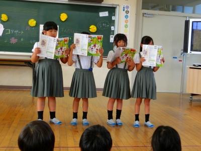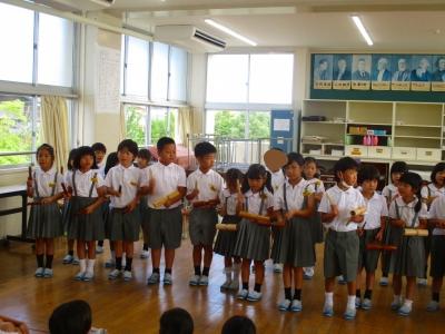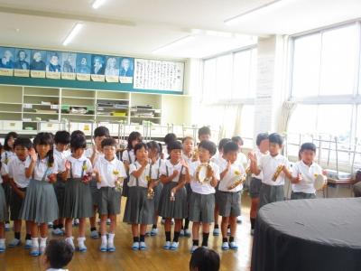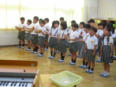 最後に、1年生から「しろくまのジェンカ」の歌と楽器の演奏を聴かせてもらえました。