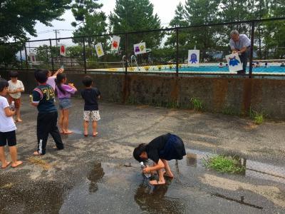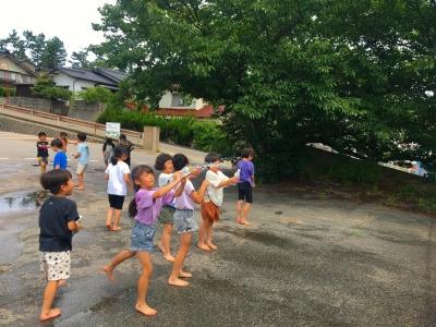 水鉄砲でモンスターをねらったり、友達と水をかけあったりしてとても楽しそうでした。