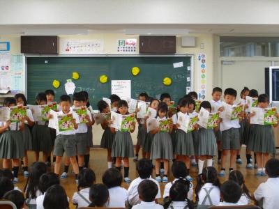 終業式の最後には、今月の歌をうたい、元気いっぱいの1学期をしめくくりました。
