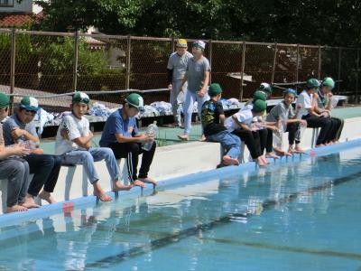 1学期の水泳授業は7月21日で終了しました。最後の授業は高学年による着衣泳でした。着衣泳とは、日常着を着たままプールに入り、歩いたり、泳いだりすることで、実際に海難事故に遭遇した際に身を守るためにどんな事に気をつけることが必要かを学ぶ授業です。