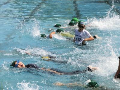 まずは、水の中で歩いてみたのですが、「重い」「進まない」というつぶやきがあちらこちらから聞こえてきました。水を含んだ着衣の重さを実感した後に、泳ぐ体験もしてみました。これも、子ども達にとっては初めての体験でした。意外とすいすい泳げる子もいましたが、「(思ったより)進まない」と苦労している子が多かったです。