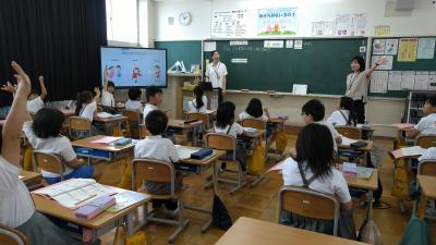 外国の風景を見て驚く子や、初めて見る食べ物の画像に「おいしそう」と思わずつぶやく子など、素直な反応があちらこちらから見られました。