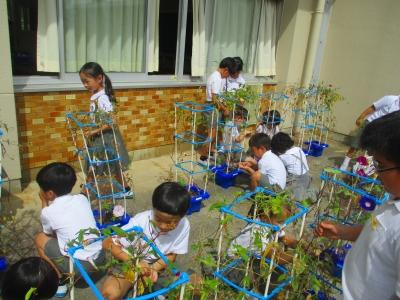 できた種については、「つぎの1年生にあげたい」、「もうかれちゃったからもう1回植えたい」、「まえやったみたいに観察したい」など、自分の思いを発表していました。