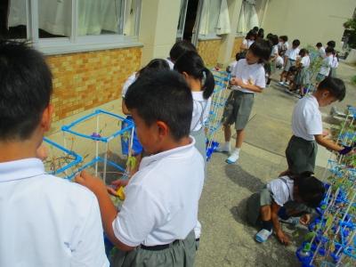 子どもたちが夏休みに頑張って制作した様々な作品が、図工室と理科室に並んでいます。