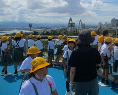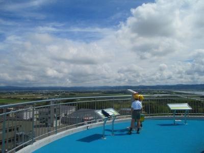 風と砂の館を見学した後、内灘町総合公園の展望台に登り、社会科の学習として内灘町の東西南北に何があるのかも見てきました。