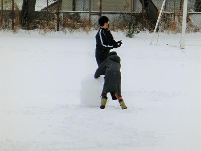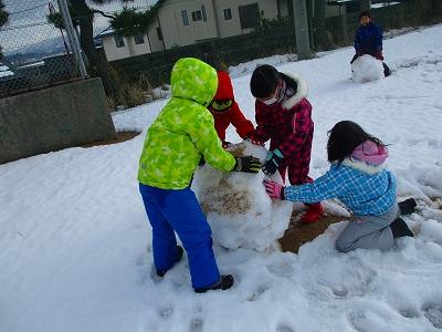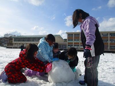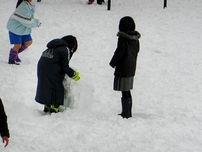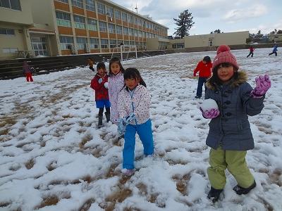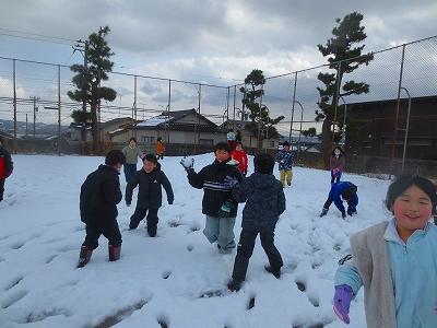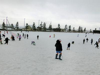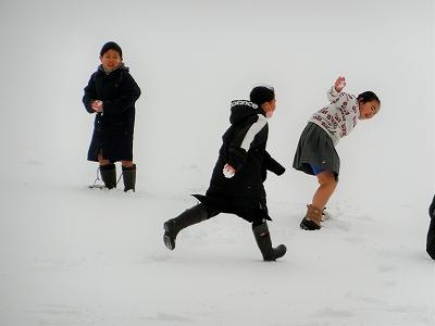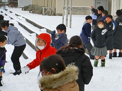 休み時間になると、たくさんの子ども達が雪遊びを楽しむために、校舎から運動場へと飛び出してきました。