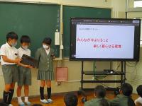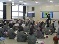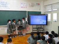 NTTドコモの方に来校いただき、SNSや直接会わないときのコミュニケーションの取り方で気を付けるべきこと等について具体的なお話をしていただきました。グループで考えたり、友達の発表を聞いたり、クイズに答えたりする中で、子供たちは自分事としてよく考えることができた時間でした。
