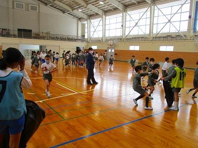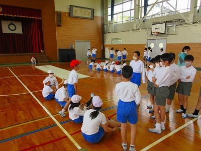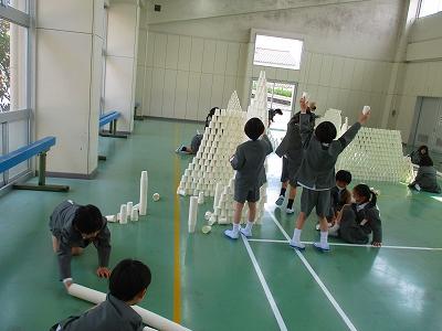どのグループも、紙コップリレーと、6年生の考えたあそびで楽しそうに遊んでいました。