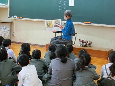 今週、がらがらどんさんが読み聞かせにきてくださいました。その日の朝は、気温がぐっと下がり、路面は凍結状態。そんな中でも、朝の早くから学校にきてくださるボランティアさん。本当に有難いです。