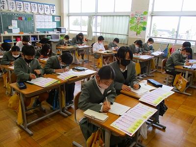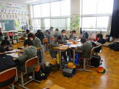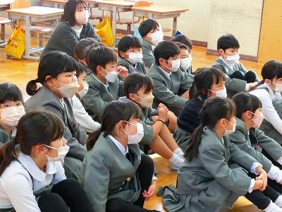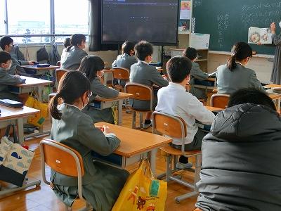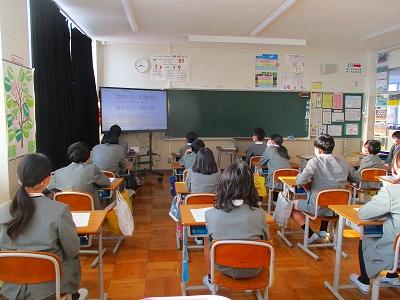 先輩たちが、学校の中を案内しながらくわしく説明してくれていたので、6年生は真剣に視聴していました。「~部がいいかなあ」「~部に入りたい」「中学校広いね~」など視聴後友達と楽しそうに話していました。期待と不安でいっぱいの様子でした。