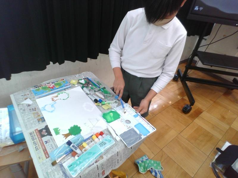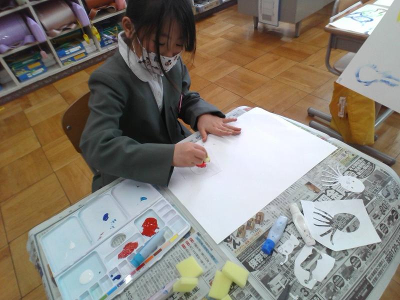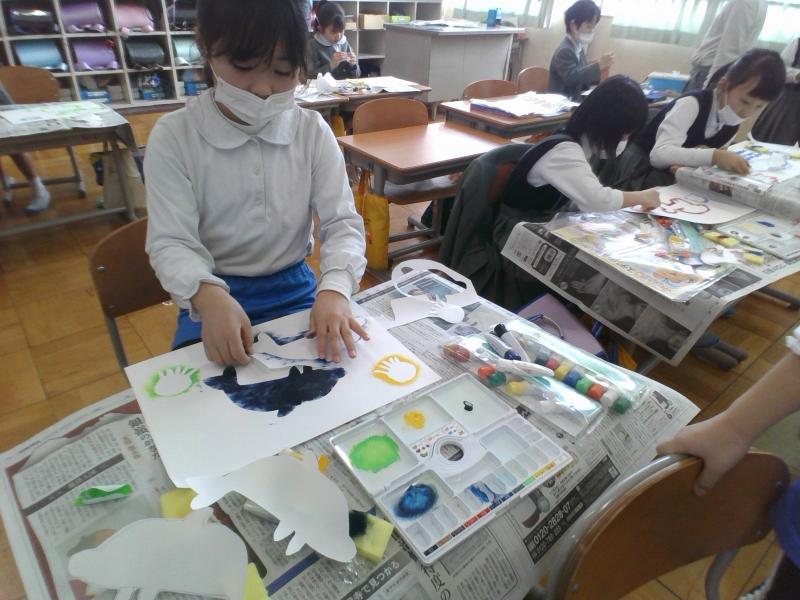 今日は図工の授業がありました。型紙を使って形を写す学習をしました。どの子も楽しんで作品作りを行っていました。