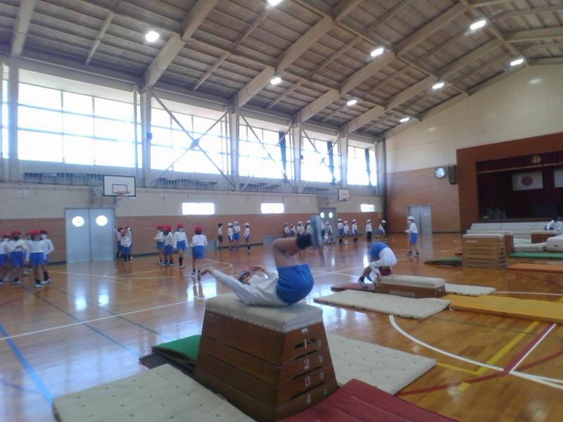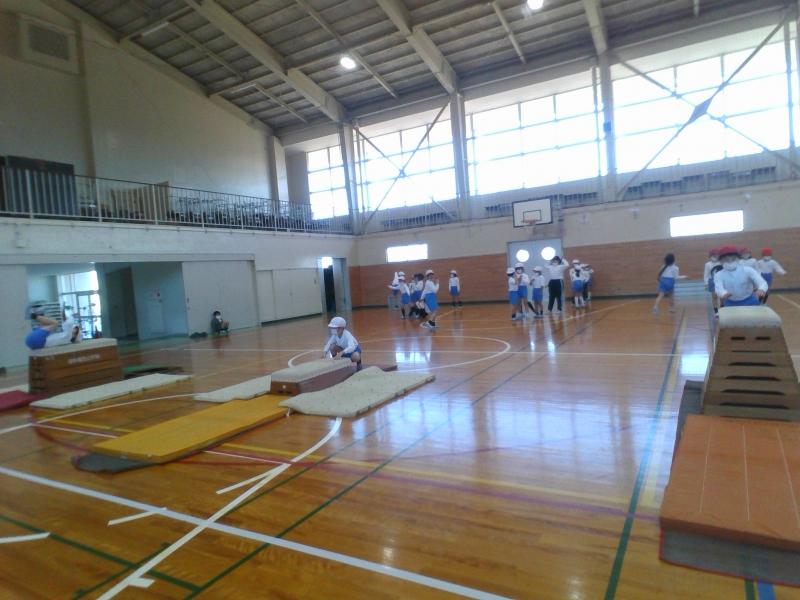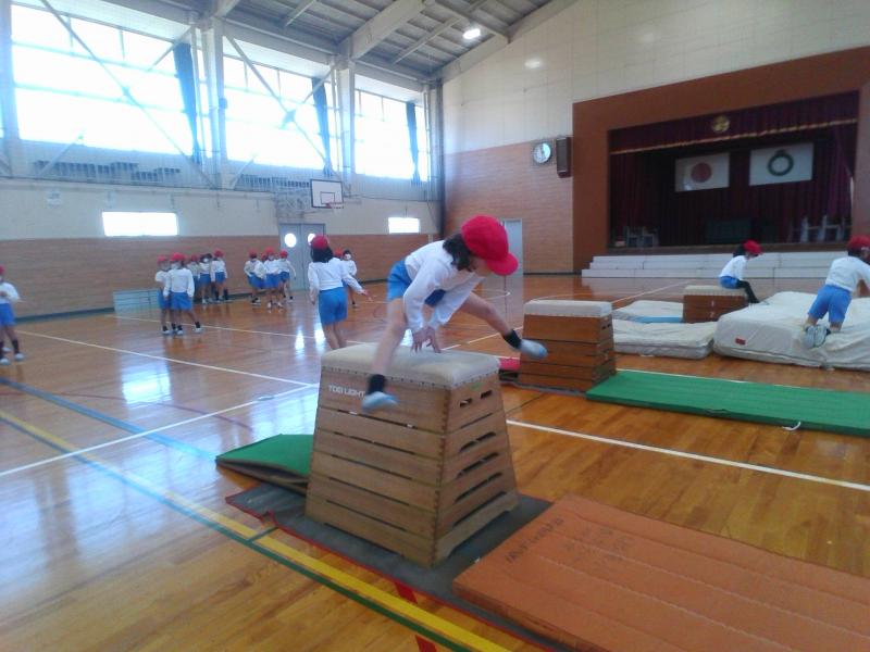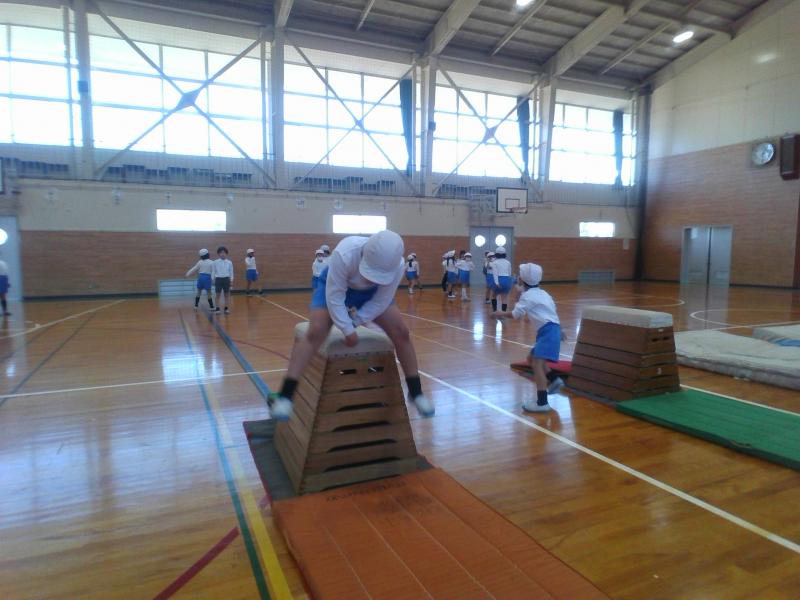 開脚跳びや台上前転ができるように練習をしたり、どんどん高い段を跳べるようにチャレンジしたりなど、どの子もとても頑張っています。