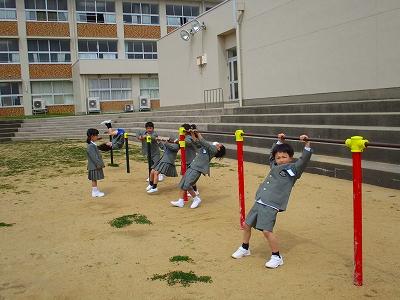 5月の器械運動交歓会に向けて、4年生の練習が始まっています。
