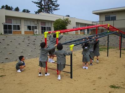 運動場に出tて、遊具で遊びました。