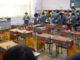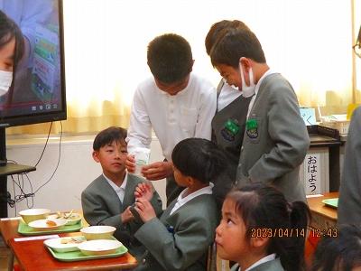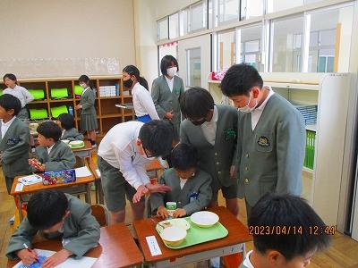 給食時間にも6年生が手伝いに来てくれました。
