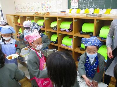 朝から給食が待ち遠しい様子で、いたるところから「給食食べたーい!」の声がありました。