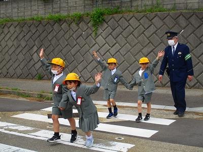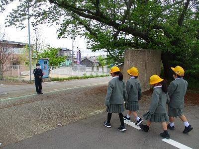 津幡警察署の方に来ていただき、道路の歩き方や横断歩道の渡り方を教えていただきました。