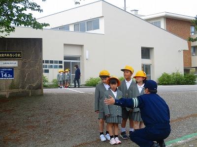 DVDを見た後は、実際に学校前の横断歩道まで行き、正しく歩けるか確かめました。