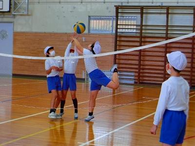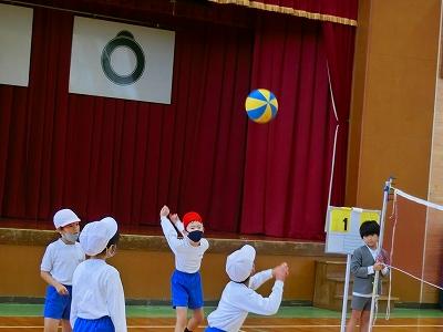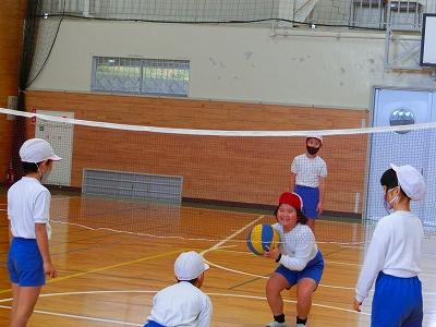 バレーボールと違って、ボールをキャッチすることができるため、中学年の子ども達にとっては、取り組みやすい運動です。