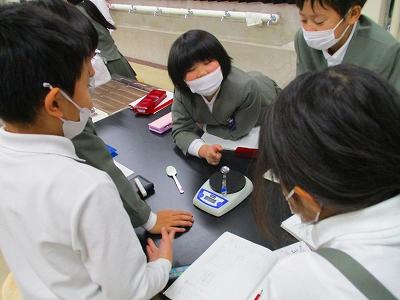 ②砂糖と塩、プラスチックと金属の重さを量り、それぞれ比べました。