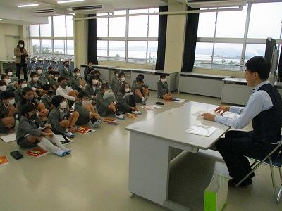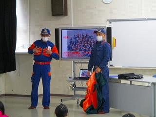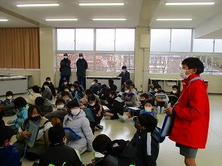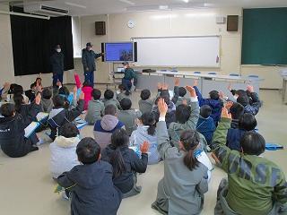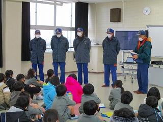 12/15(木)に消防署員1名と消防団4名をお迎えし、消防団の活動について教えていただきました。