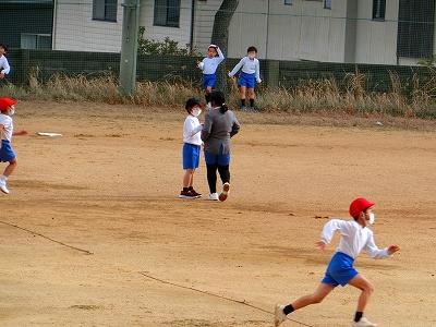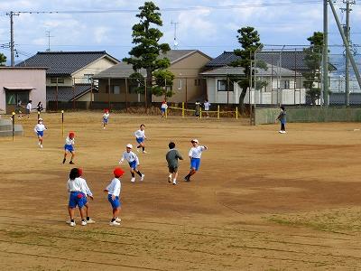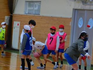 友達と、声をかけあったり、途中でボールの回し方を考え合ったりしながら、和気藹々と楽しむ姿があちらこちらに見られました。ボールのやりとりと共に、心のやりとりもしているような雰囲気の3年生でした。
