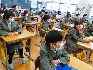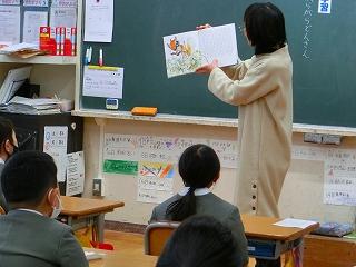 12月24日(火)、今年最後の朝の読み聞かせが各学年2組の教室でありました。読み聞かせは、ボランティア団体のがらがらどんさんがしてくれています。朝の短いひとときではありますが、がらがらどんさんの優しい語りかけに子ども達の心もほっこりします。1日のスタートを優しい空気の中で過ごせる子ども達の表情は、とても和やかな表情です。