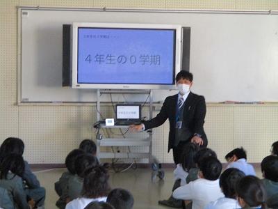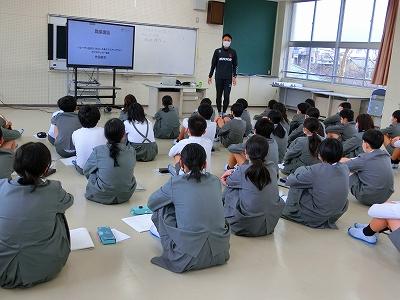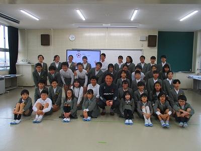 6年生は総合のキャリア教育「人の生き方に学ぶ」でツエーゲン金沢の元プロサッカー選手の作田裕次さんをお招きして講話をしていただきました。