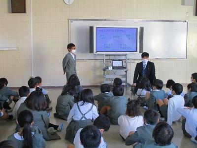 6年生は、総合の時間にJICA北陸の野吾さんをお招きして、貴重なお話を聞きました。大学を出てから、JICAで仕事をすることになった経緯や、実際にJICAでどのような仕事をしているのかを画像資料を使ってとても丁寧にお話しして下さいました。色々な国の人々の生活の様子、考えなどにも触れることができました。