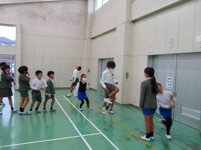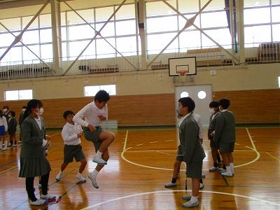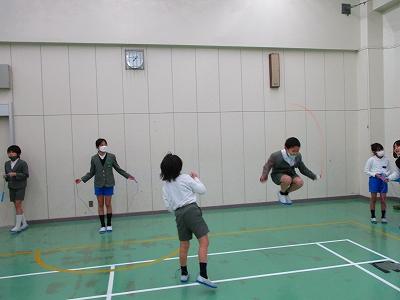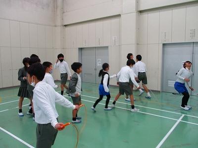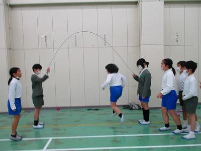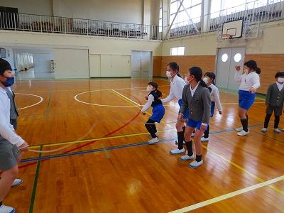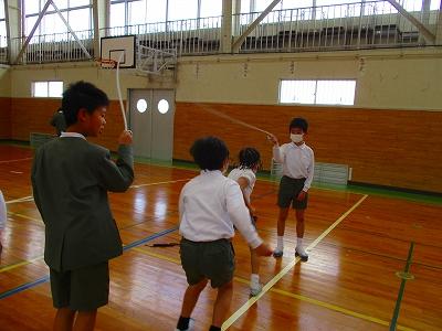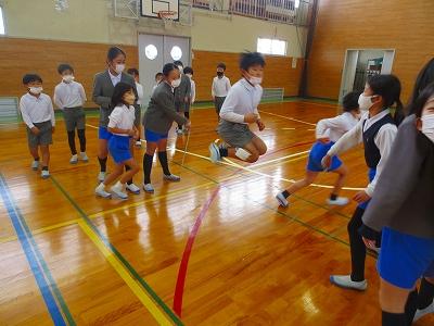5年生が8の字とびのコツを教えてくれたり、難しい技を見せてくれたりと、たくさんリードしてくれました。