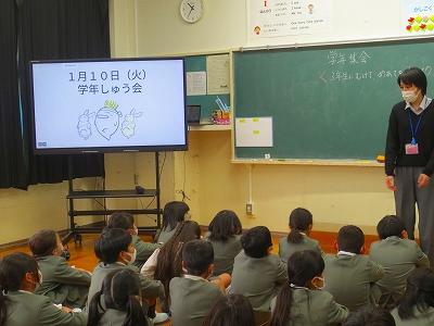 学年集会では、すてきな3年生になるための、3学期のめあてを考えました。どの子も自分の頑張りたいことをめあてにしてしっかりと書いていました。